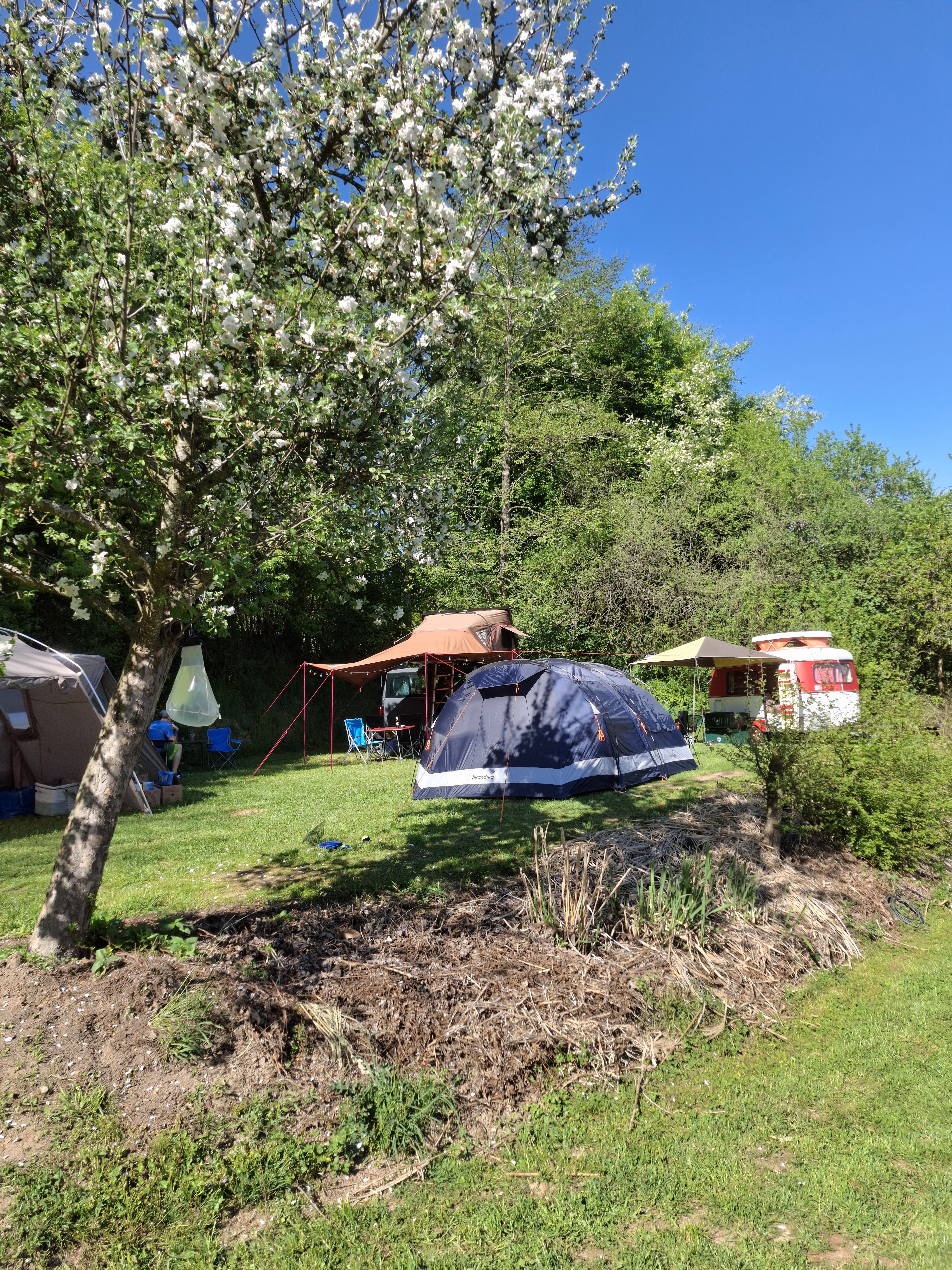 Chaque emplacement est entouré d’arbres et de verdure, pour un séjour paisible et proche de la nature. Un cadre idéal pour faire une pause, profiter du calme et passer la nuit dans une atmosphère authentique et conviviale.